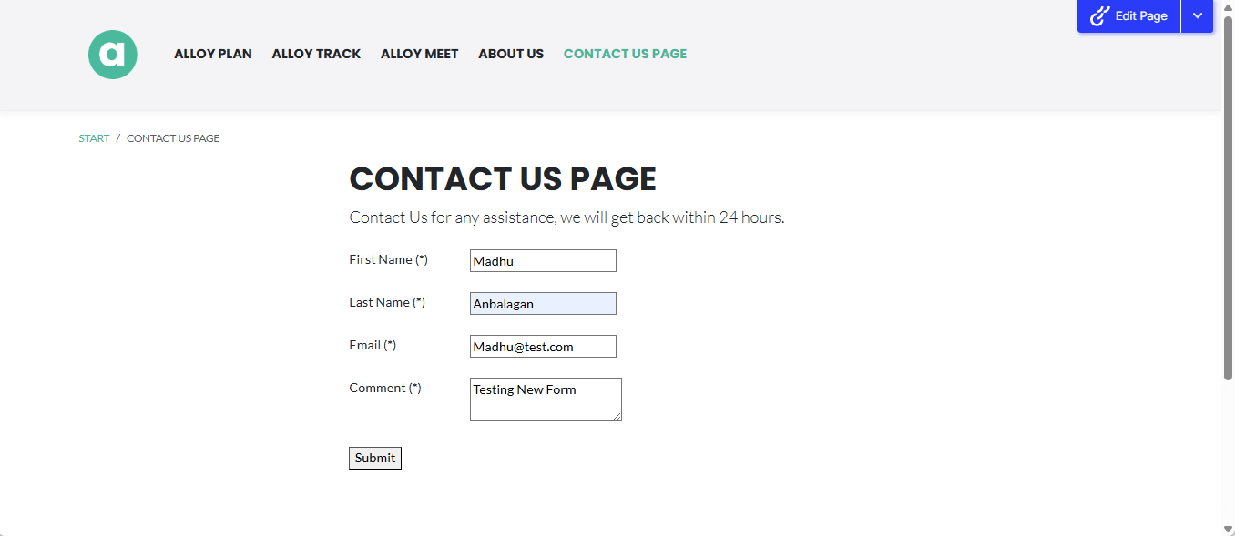- Let’s submit the form – you could redirect to a specific page if needed.