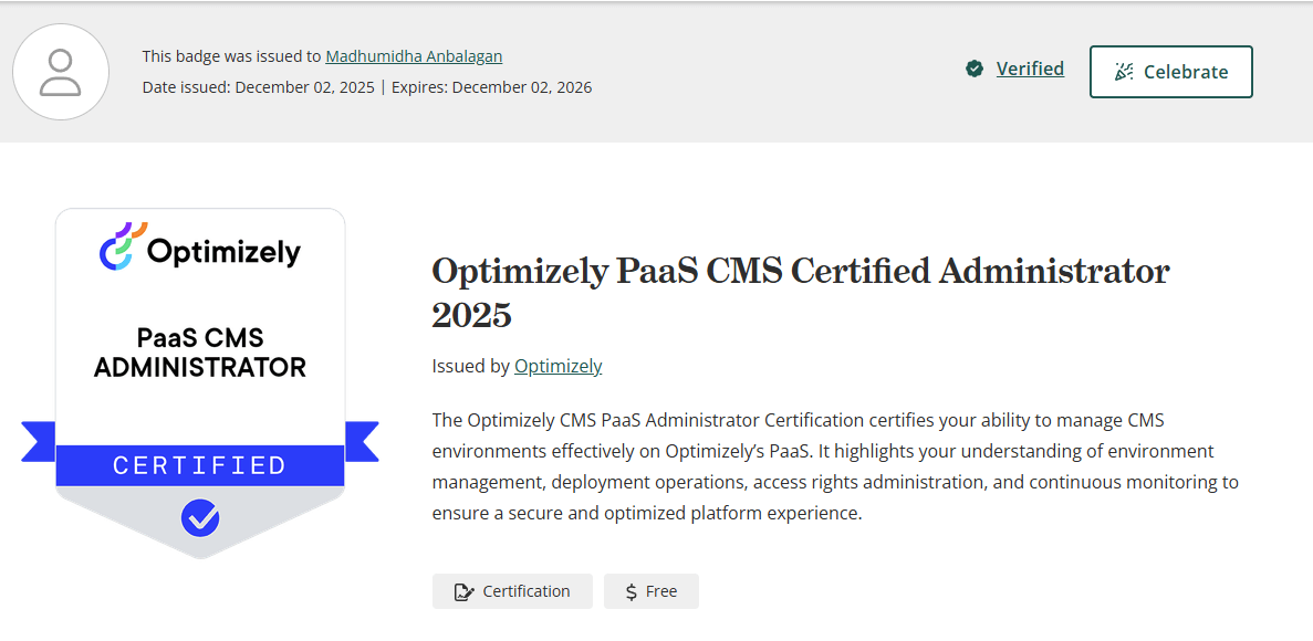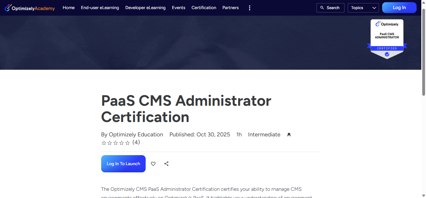 Optimizely has recently launched a free PaaS Administrator Certification.